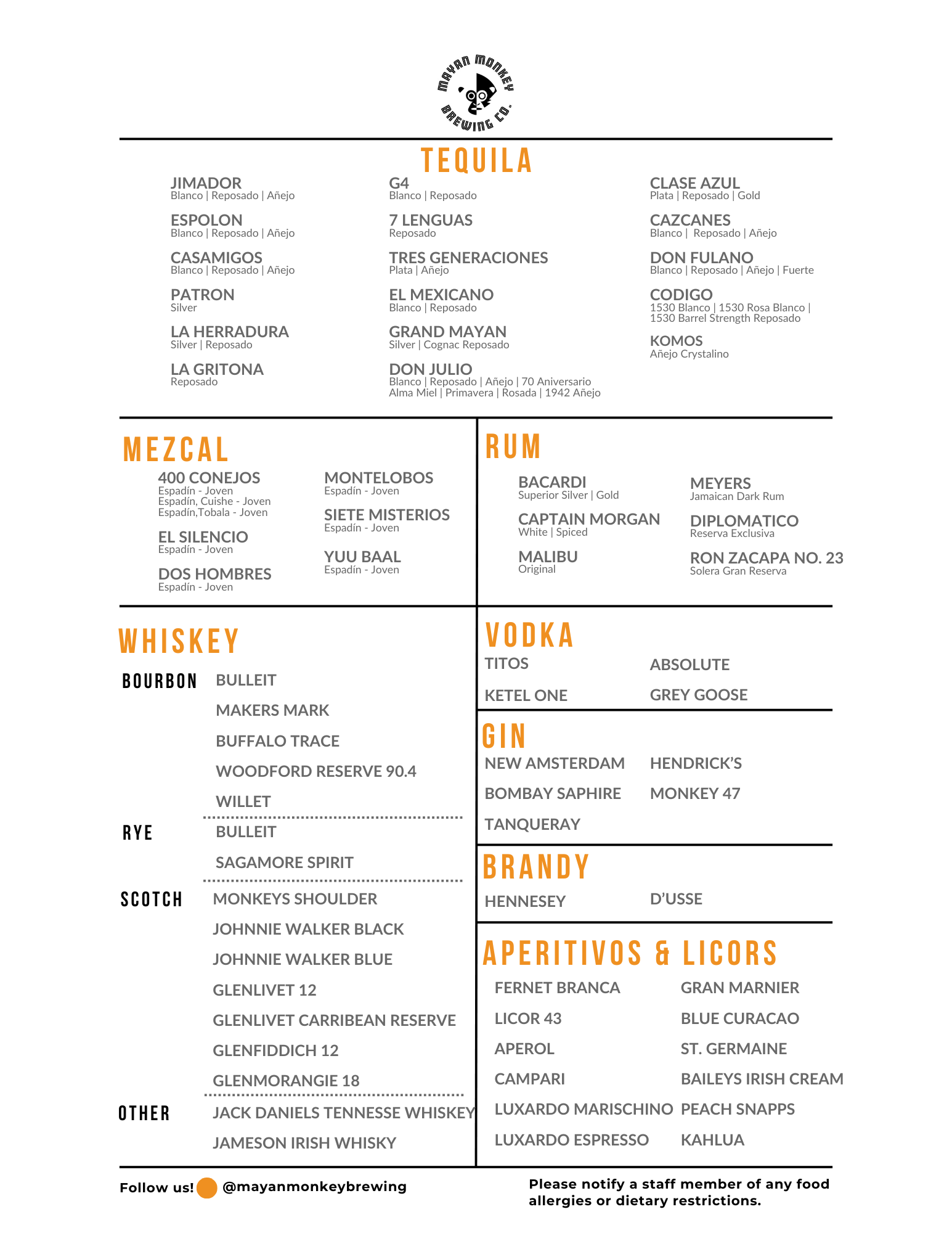 House-made beers, carefully curated wines, cocktails, an extensive list of tequila, mezcal